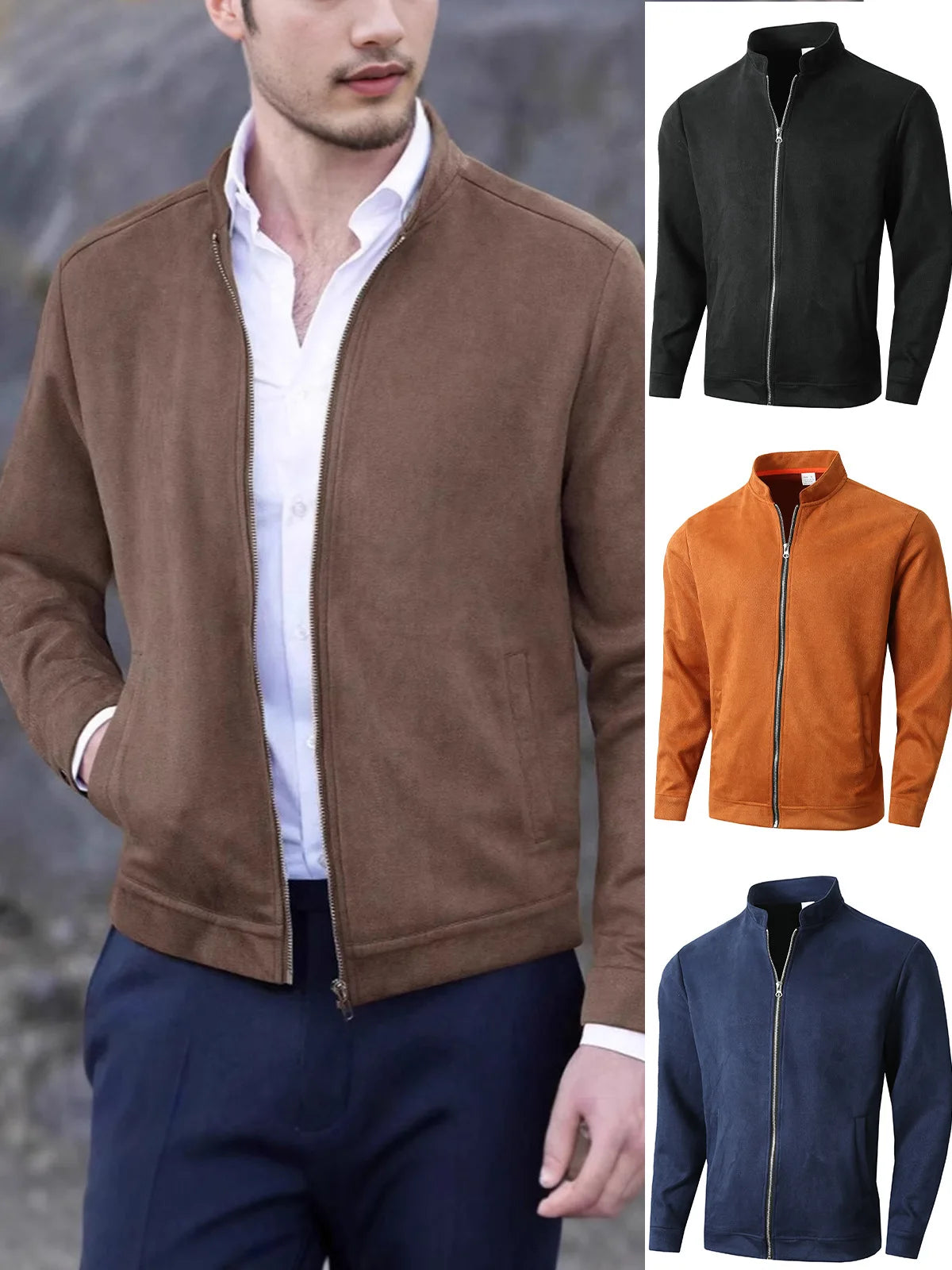 Autumn Winter New Style Slim Fit Round Neck Long Sleeves Stand Collar Cardigan Casual Jacket Men